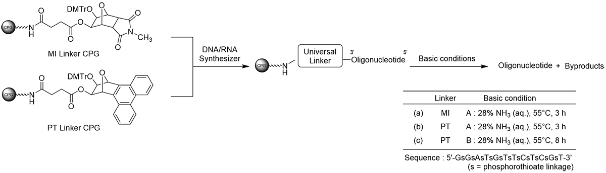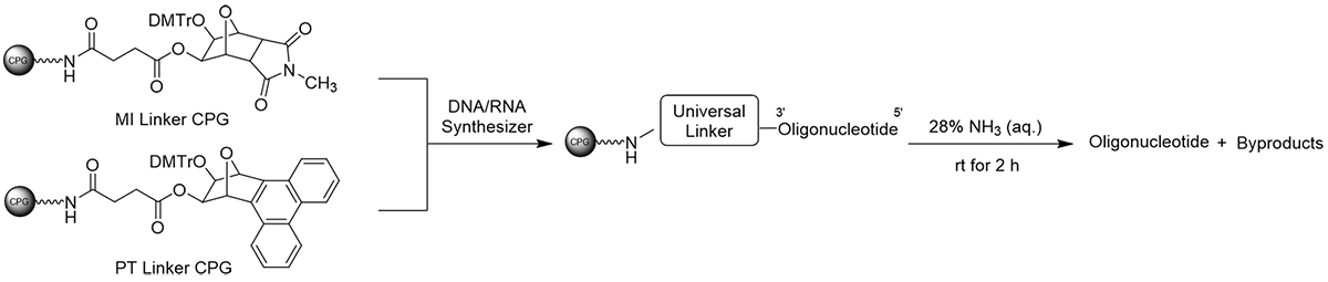 - Usable under the same reaction conditions as conventional universal linkers