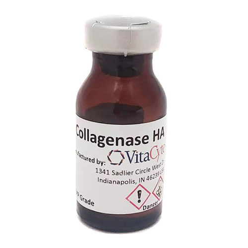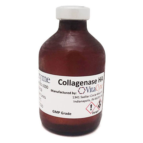 GMP Grade Collagenase HA is an aseptically prepared, lyophilized mixture of 60% purified Class I (C1) Collagenase and 40% purified Class II (C2) Collagenase from Clostridium histolyticum.