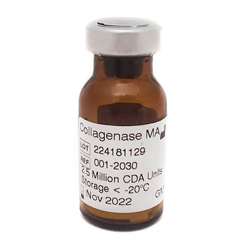 GMP Grade Collagenase MA is an aseptically filled, lyophilized protein mixture containing 60% purified Class I (C1) and 40% purified Class II (C2) collagenase from Clostridium histolyticum.