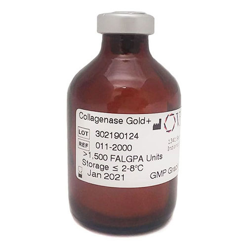 GMP Grade Collagenase Gold Plus is an aseptically prepared, lyophilized purified defined collagenase that contains both Class I and Class II Collagenase from Clostridium histolyticum.