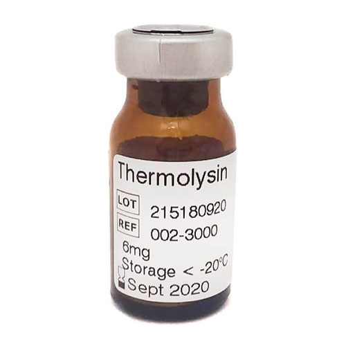 GMP Grade Animal Origin Free (AOF) Thermolysin is an aseptically dispensed, lyophilized purified protease from Bacillus thermoproteolyticus.