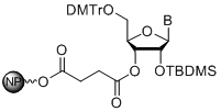 DNA: 1.10 g (20-mer, 200 µmol/g) RNA: 1.05 g (21-mer, 150 µmol/g) |