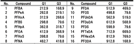 内部標準液:13C-PFOS・13C-PFOA混合液 (PFOS:100 μg/L, PFOA : 100 μg/L)