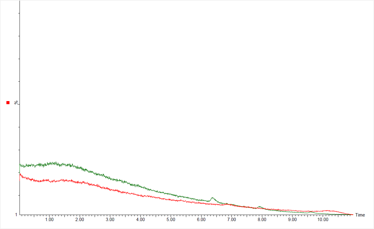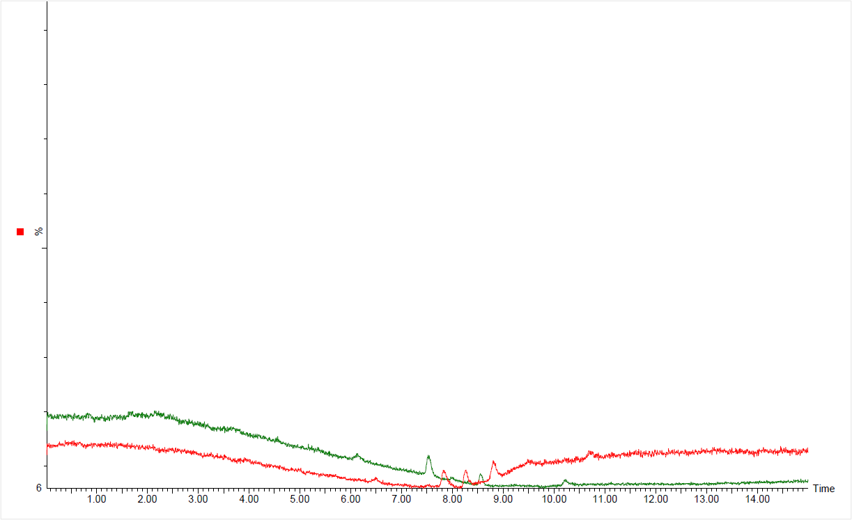 LC/MS用溶媒は製法の見直しにより、品位が向上し、従来よりさらにベースラインを低く抑えています。
