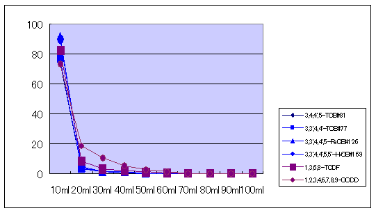 | Hexa-CDDs | 1以下 | Hexa-CDFs | 1以下 | Hexa-CBs | 10以下 |