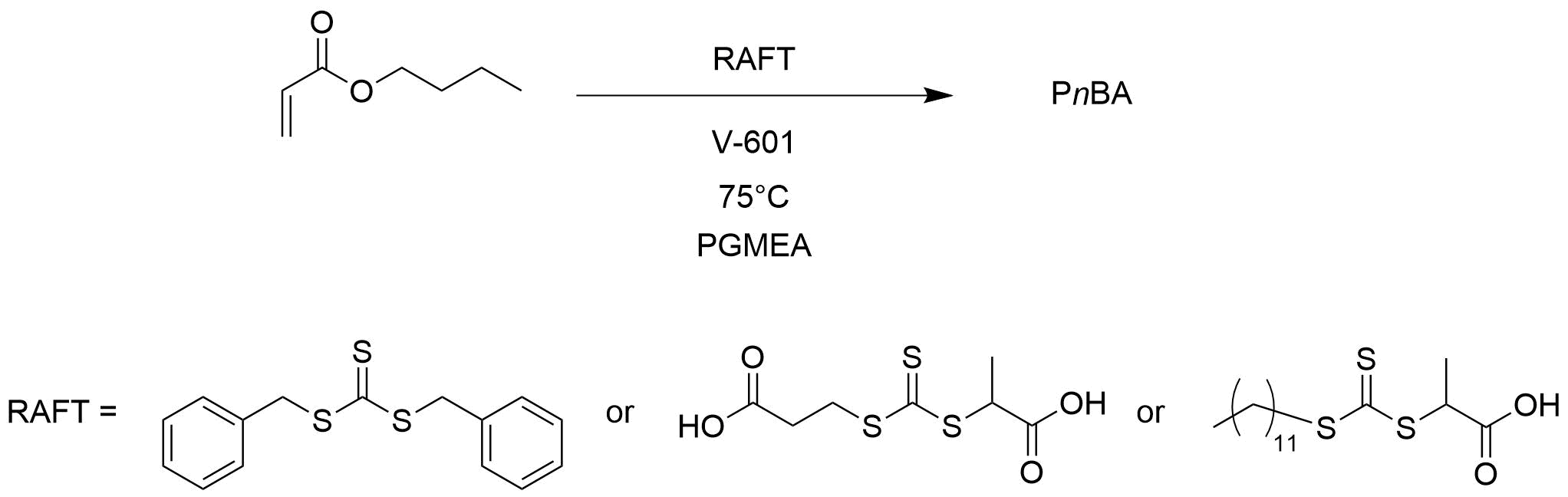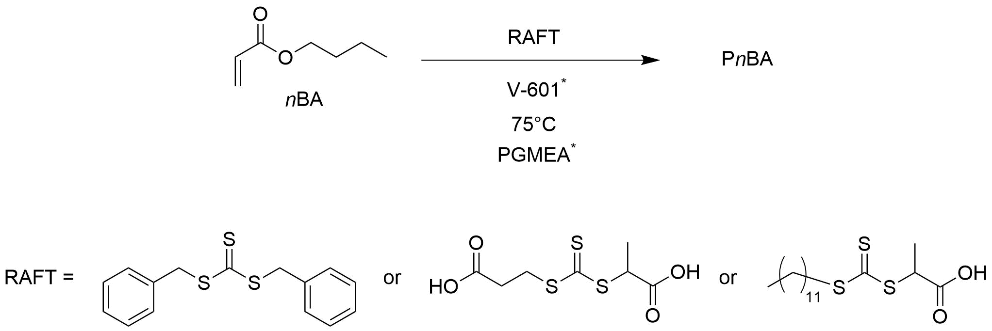 | No. | RAFT | Monomer | Time (h) | Monomer/RAFT/Initiator | Mw | PDI Mw/Mn |