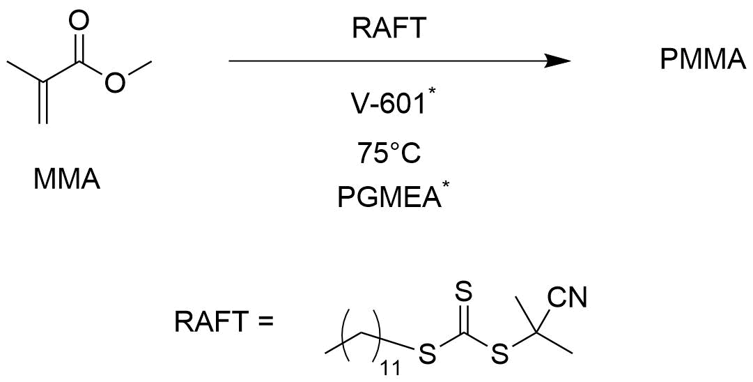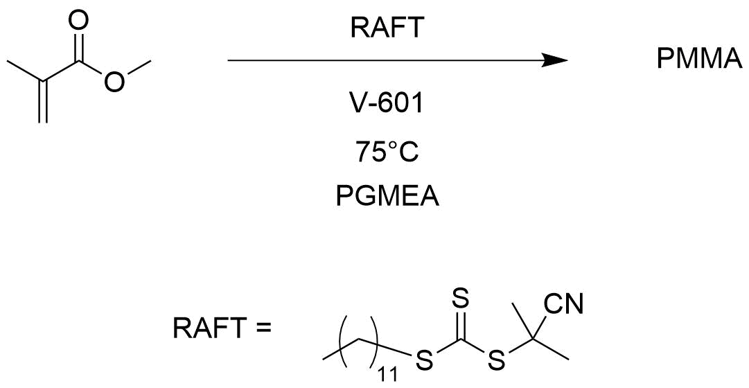 制御リビングラジカル重合手法の一つに、硫黄化合物である可逆的付加-開裂型連鎖移動剤(Reversible Addition-Fragmentation chain Transfer agent, RAFT剤)を用いた重合があります。この重合は一般的にRAFT重合と呼ばれ、分子量分布が狭いポリマーの合成に有効です。