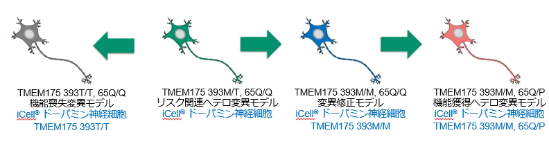 iCell® DDP (パーキンソン病モデル) の製品群は、 iCell® ドーパミン神経細胞 (SNCA A53T) -01279、 iCell® ドーパミン神経細胞 (GBA N370S) -11344、 iCell® ドーパミン神経細胞 (LRRK2 G2019S) -11299、そして iCell® ドーパミン神経細胞 TMEM175 変異モデル の四種類のパーキンソン病モデル細胞からなります。