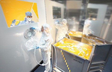 専用コンテナー (パレタンク) とシングルユースバッグ (3Dバッグ) を組み合わせて、溶液の調液、保管、搬送を行うことができます。バッグはすべてクリーンルーム内で製造され、ガンマー線滅菌されて供給されます。洗浄、滅菌、バリデーションの工程が不要で、効率のよい製造環境を提供します。