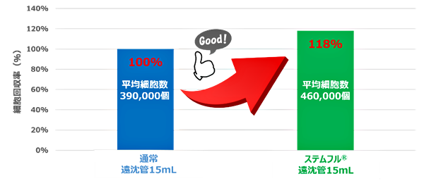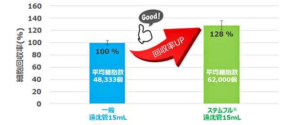 ステムフル®は一般遠沈管に比べ細胞吸着による細胞ロスが少なく、貴重な細胞の回収率向上に貢献