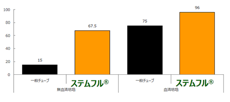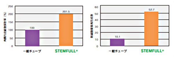 ステムフル®は一般チューブに比べ幹細胞を効率的に回収でき、その効果は特に無血清培地で顕著