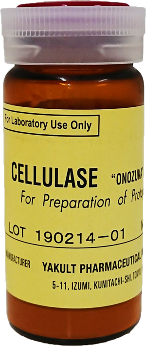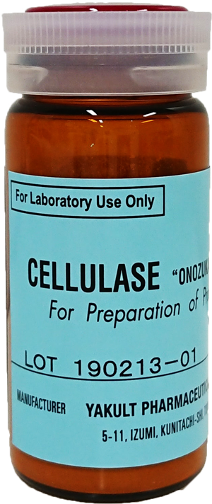 | 特長 | 天然セルロース分解力を有し、植物の細胞壁を溶解します。 植物葉肉細胞、培養細胞のプロトプラスト調製に適しています。 |