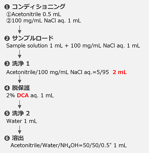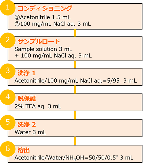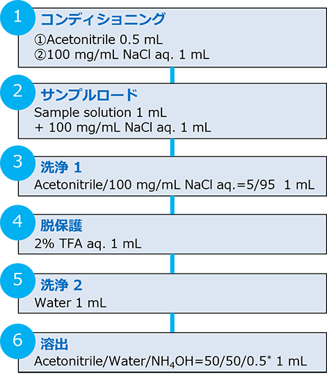 | Elution | 0.5% NH4OH in Acetonitrile/Water=50/50(v/v)*2 | 3 mL |