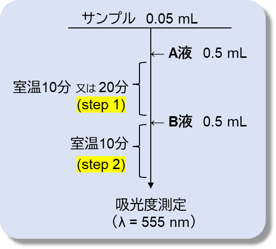 - 試薬は調製済みですぐに測定可能