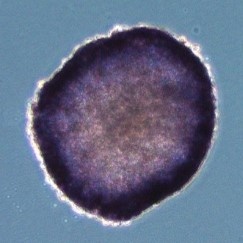 本品1,000 units/mLを含む培地でマウスES細胞D3株を培養し、ALP染色陽性であることを確認した。