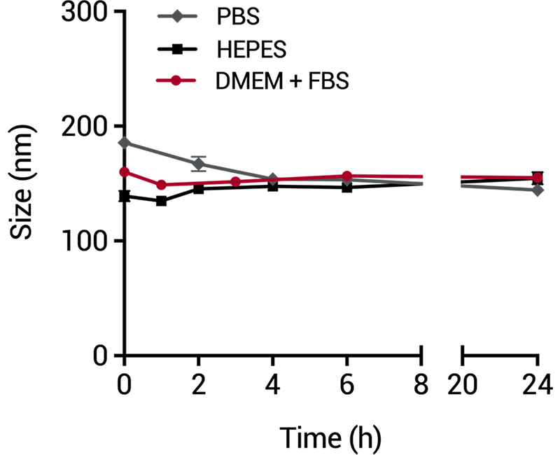 さまざまな生物学的液体、血清、細胞培養液中で安定に存在