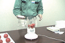農産物の可食部を細切し、ジューサーなどで1分間磨砕均一化します。