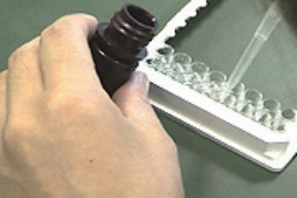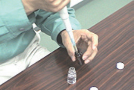 標準試薬L・Hに10%メタノール1 mLを、酵素標識物試薬に精製水6 mLをそれぞれ加えて溶解します。