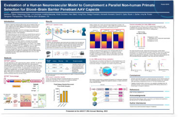 Cynomolgus macaque(非ヒト霊長類[NHP])における静脈内投与後の中枢神経系(CNS)への転送効率を向上させたカプシドを設計するために、SIFTER™(Selecting In vivo For Transduction and Expression of RNA)を採用しました。その後、in vitro とin vivo および種間でのカプシド性能の不一致を解決するため、BBB の主要な特性を再現するヒト細胞モデルを実装しました。