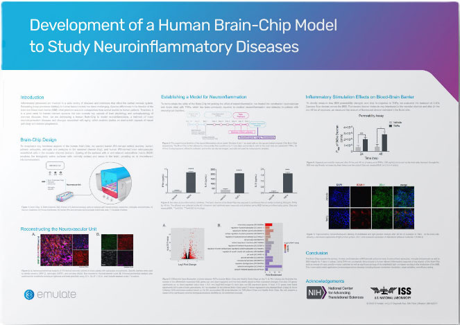 Emulate の研究チームは、内皮様細胞、ペリサイト、グリア細胞、皮質神経細胞を含むヒト脳チップを開発し、BBBの透過性をin vivo レベルに維持しました。この特徴により、モデルは神経炎症を忠実に再現でき、従来のヒト脳モデルよりも高い精度で、神経炎症時の細胞間相互作用とBBB の機能に関するメカニズムを解明することが可能になりました。