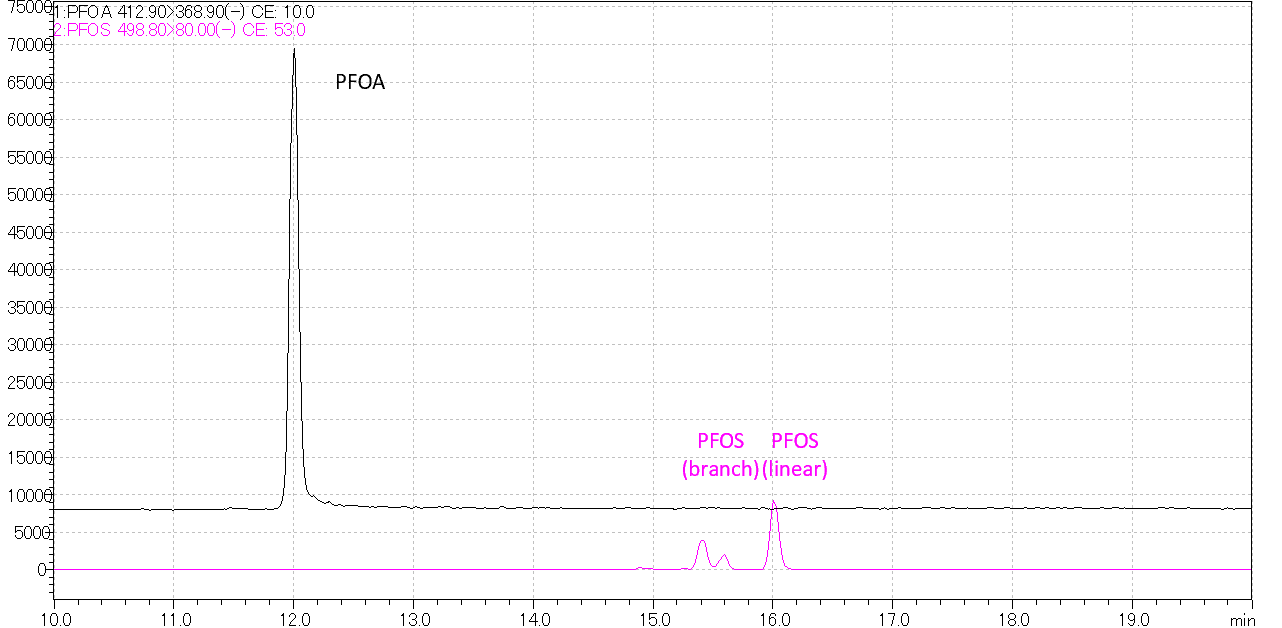 - PFOS・PFOA混合液(PFOS:直鎖として78 μg/L, PFOA:100 μg/L
