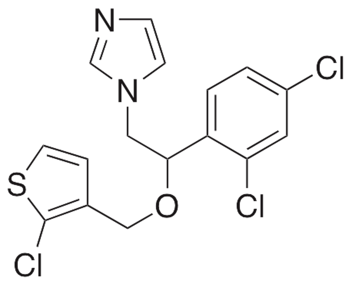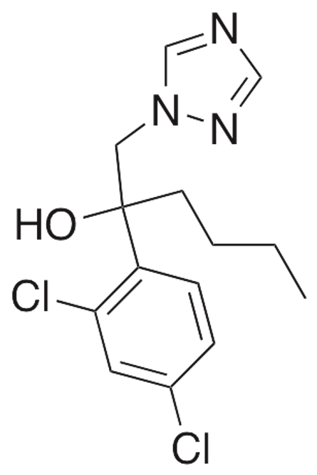 アゾール化合物は5員環に窒素を含む複素環化合物の総称です。広範囲の抗真菌活性を示し、アスペルギルス(Aspergillus 属)、ボトリチス(Botrytis 属)、マラセチア(Malassezia 属)、カンジダ(Candida 属)、および、アルタナリア(Alternaria 属) による植物や動物への感染を抑制するため、その誘導体は医薬および農業などにもっともよく使用されています。