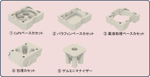 CuPS Array kit all in one kitはCuPSで作成したスフェロイドに対してパラフィン包埋までの過程を簡単に行うことができるキットです。