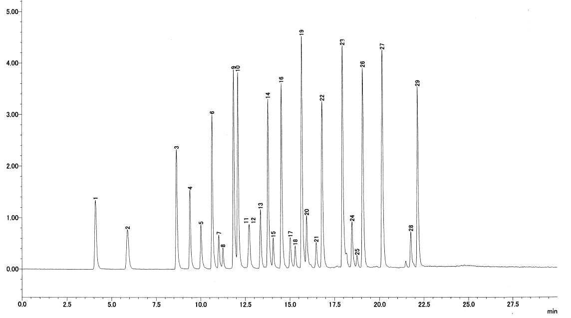 分析例 (3種有機ふっ素化合物混合標準液 + 26種有機ふっ素化合物混合標準液)