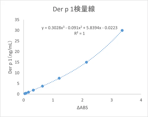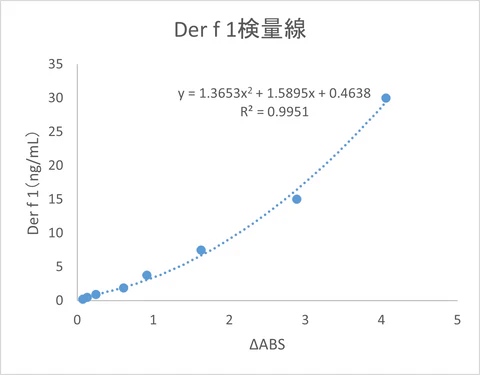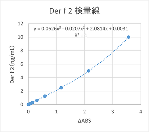 ※本キットはDer f 2およびDer p 2に反応を示すので、Der f 2とDer p 2が混在する検体中のDer f 2濃度を厳密に定量することはできません。