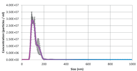 1 μLの精製エクソソームを999 μLのHEPES緩衝液で希釈した (希釈度1:1000)。