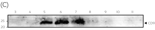- (C) 溶出画分をSDS-PAGEにロードし、非還元条件下で、抗CD9 (VJ1/20) を用いてウェスタンブロットした。