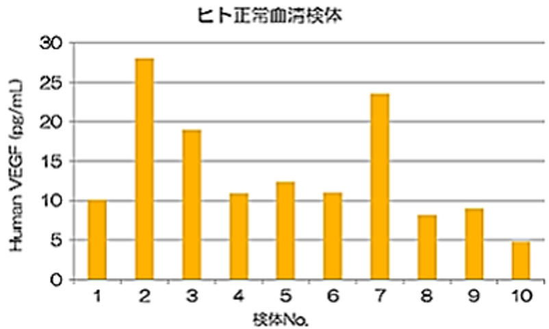 本製品は検出感度が高いため、数 pg/mLのVEGFを定量検出できた。