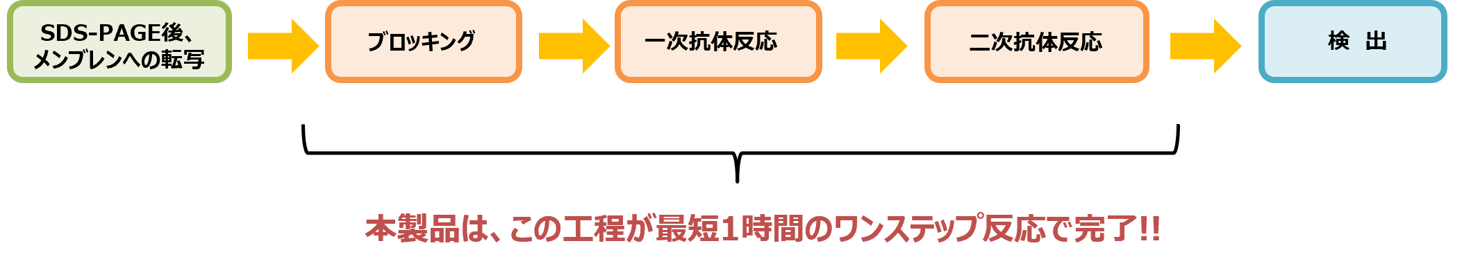 - ウエスタンブロッティングにおけるブロッキング、一次抗体反応、二次抗体反応を最短1時間のワンステップ反応で完了