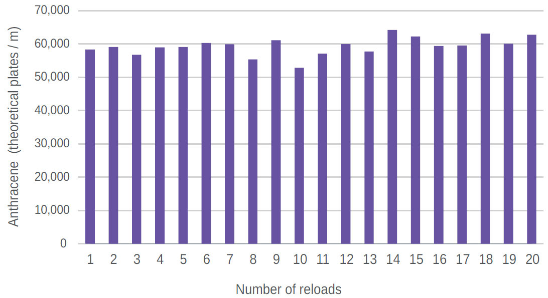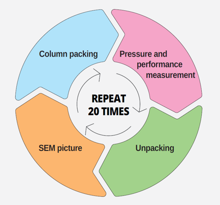 シリカビーズは、内径21.2 mmのカラムを20回再充填した後でも、完全な球形を保ち、表面は滑らかで、ひび割れや空洞は見られなかった。