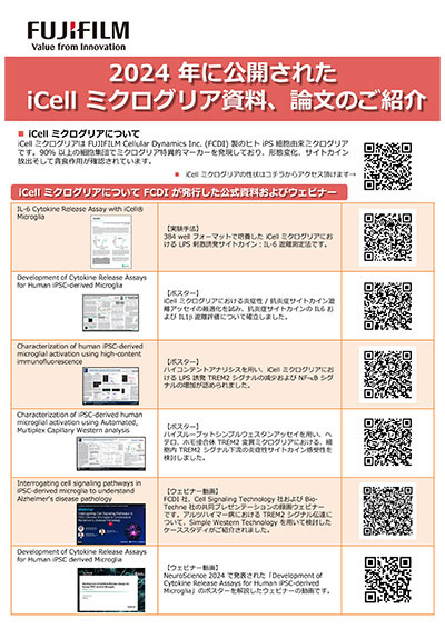 | 5 | iCell Lab Note: IL-6 Cytokine Release Assay with iCell Microglia | iCell® ミクログリアに最適化されたLPS刺激時サイトカイン放出測定の培養法です。 |