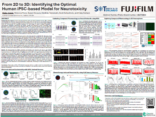 2024/3/10~3/14 | SOT 2024 | Assay Development and Validation to Measure Cardiac Contraction Force from Co-culture of Human iPSC-derived Cardiomyocytes and Cardiac Fibroblasts on the FLEXcyte 96 System | FLEXcyte 96 システムを用い、iCell 心筋細胞とiCell 心臓線維芽細胞の共培養における心収縮力を測定するアッセイの開発と検証に関するポスターです。 |