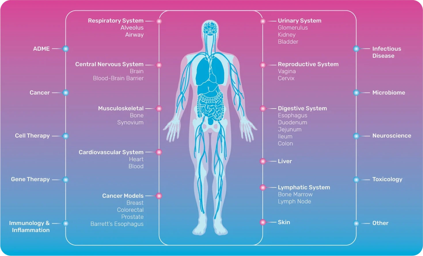 Emulate 社は、ヒト細胞ソース、臓器特異的な微小環境、および組織に適切なチップ伸縮を組み合わせることで、研究者がヒトの生物学をより忠実に模倣できるOrgan-Chip モデルを提供しています。