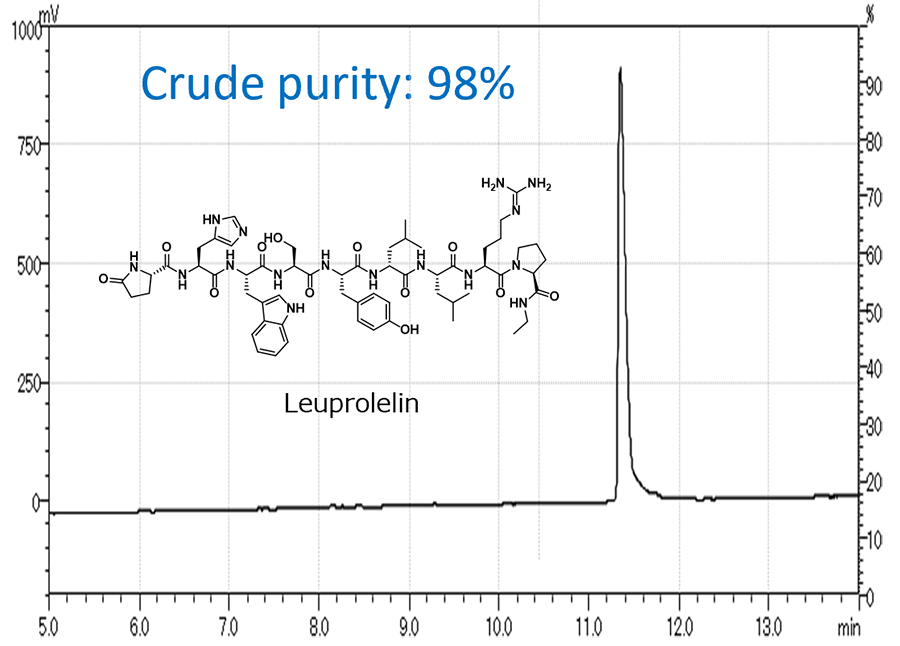 独自開発したアンカー分子上でアミノ酸残基を伸長し、より穏和な条件で粗体ペプチドを切り出します。