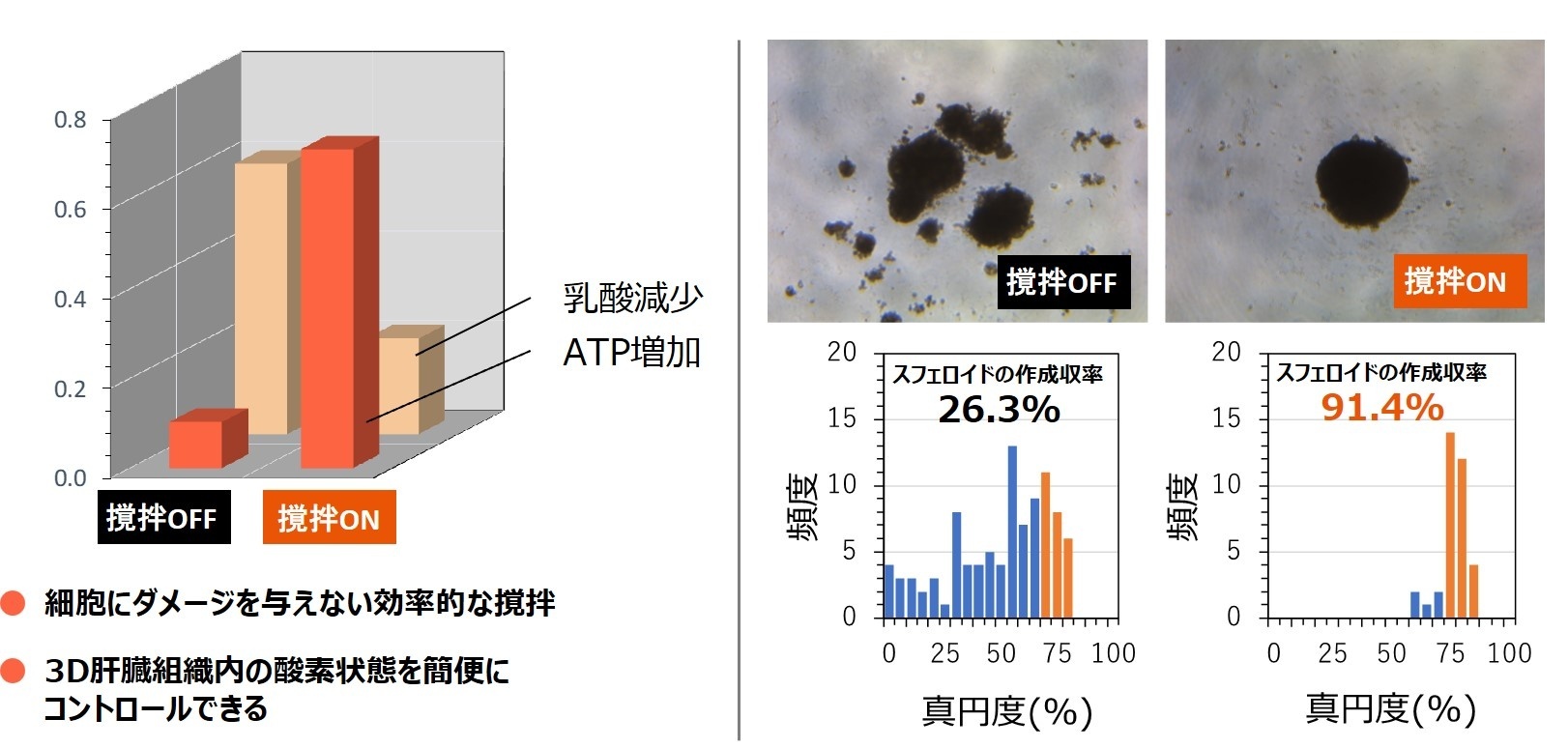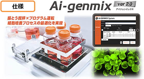 大阪サニタリー3D細胞組織用の新型撹拌装置「Ai-genmix」は、回転方向・撹拌スピード・撹拌時間を自由に組み合わせて設定することができ、今までの静置培養にない新たな細胞培養の可能性、例えば肝臓細胞スフェロイドを用いた薬物代謝試験などで有効性が確認されています。