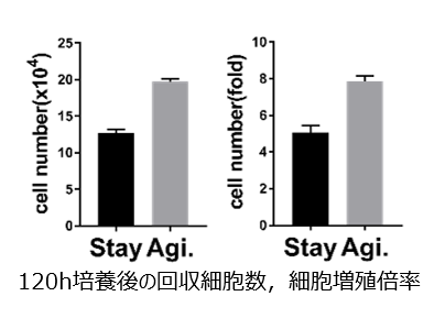 プログラム振とう撹拌 - 細胞数および細胞増殖倍率が静置培養と比べ向上した。