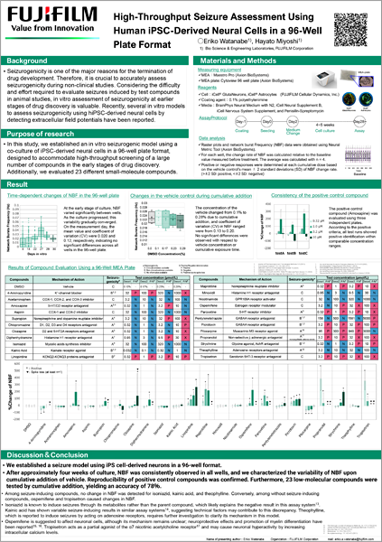 2026 | 第17回日本安全性薬理研究会学術年会 | High-Throughput Seizure Assessment Using Human iPSC-Derived Neural Cells in a 96-Well Plate Format | |