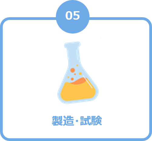 資材・原料調達、製造、試験を実施します。
