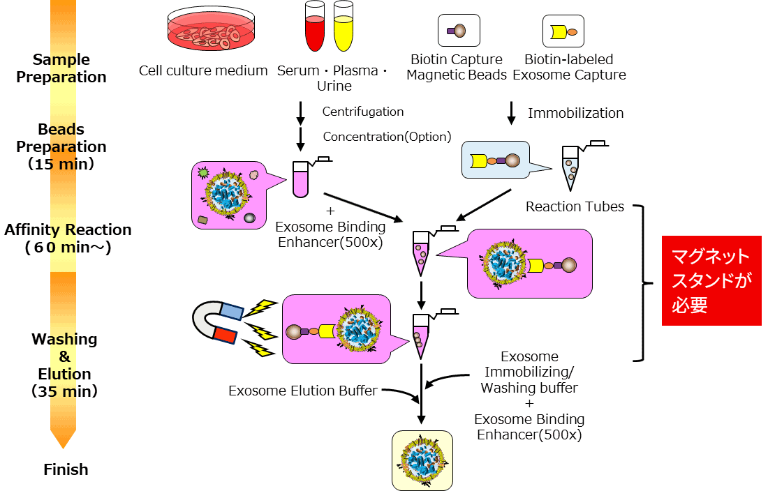 マグネットスタンドを使用することによって高純度のエクソソームを精製できます。