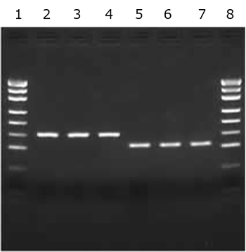 Lane1,8 :OneSTEP Marker 11(pUC19/MspⅠdigest)