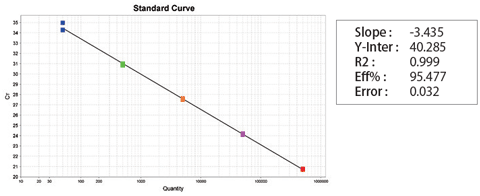 10 ~ 100,000 copies/μL の範囲でR2値0.99以上の直線性のある検量線が得られた。
