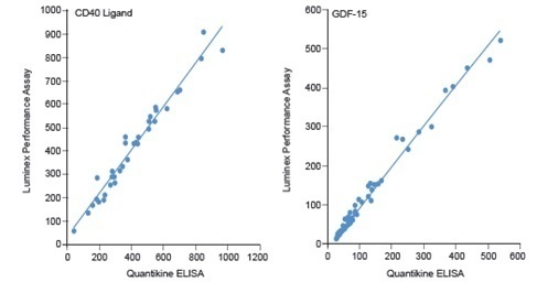 Luminex® High Performance Assay と Quantikine® ELISA Kit の相関