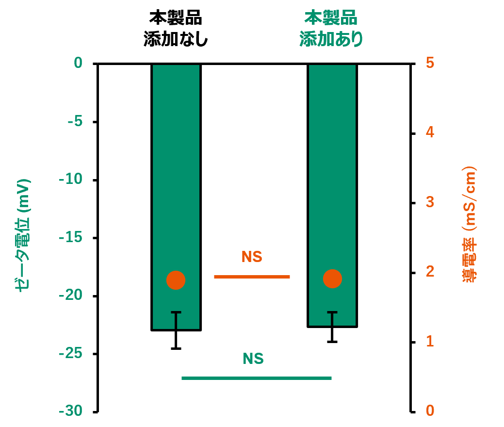 EVのゼータ電位および導電率に有意な変化は見られなかった。この結果から本製品を添加してもEVの荷電状態など物理的性質は保持されることが示唆された。