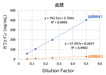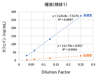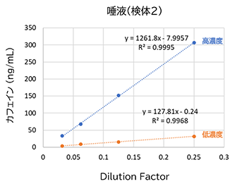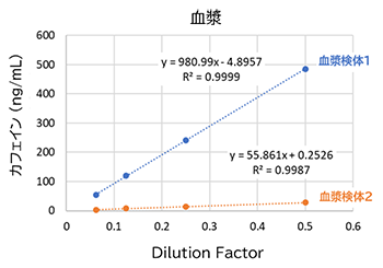 - ヒト唾液 / 血清 / 血漿だけでなく、マウスやラットの血清 / 血漿中カフェインも測定可能
