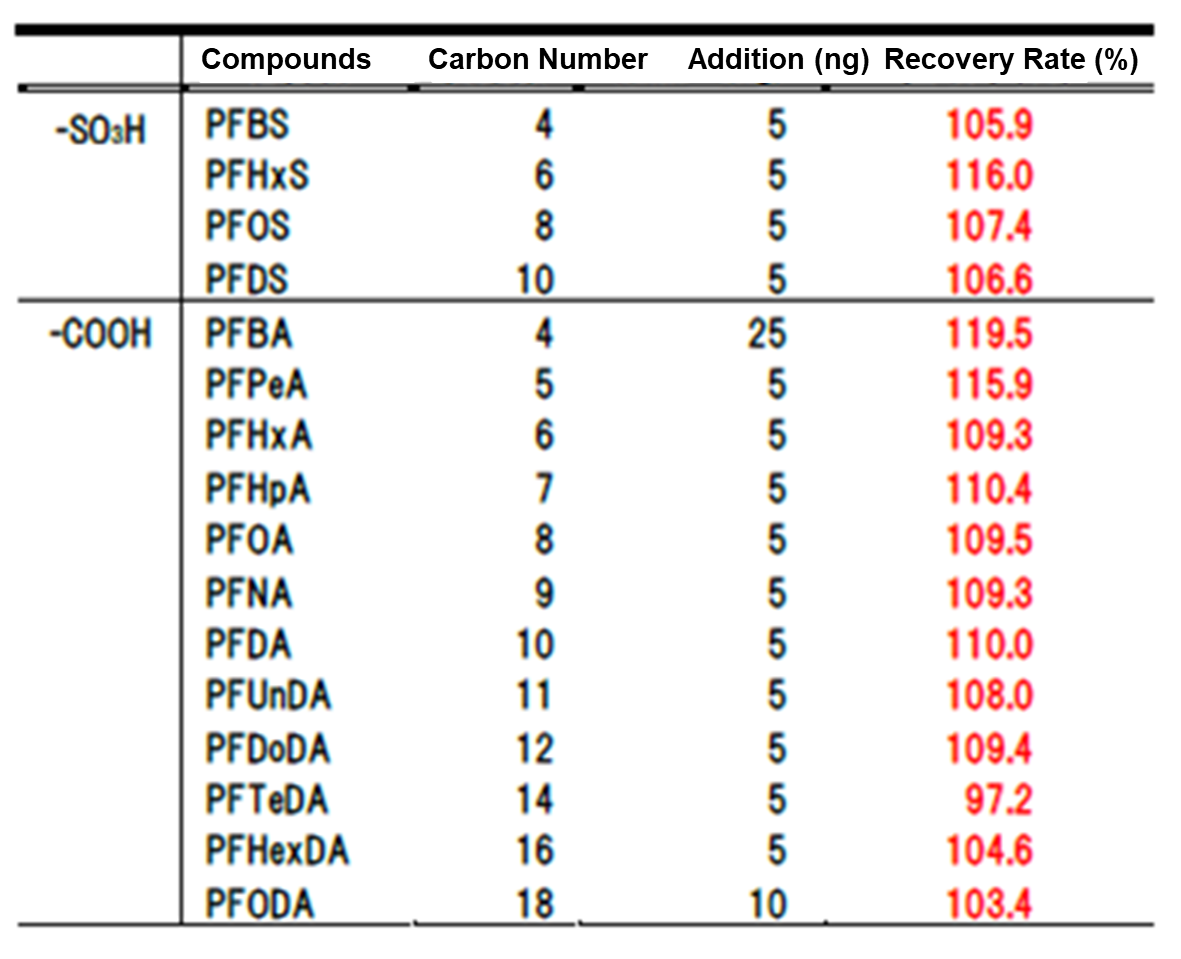 Additive recovery test (PFOA, PFOS) using Presep®-C Agri (Short)