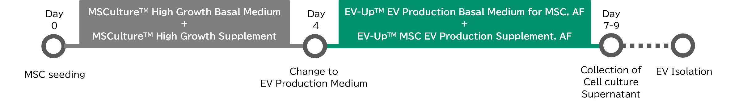 This product is compatible with any growth medium. For EV production from MSCs, we recommend MSCulture™ High Growth Basal Medium/Supplement.